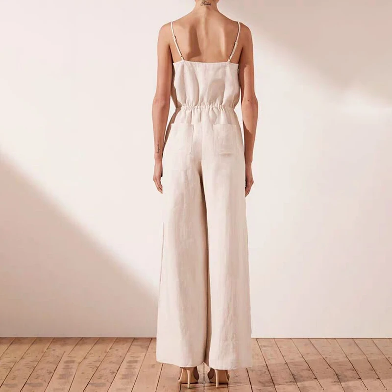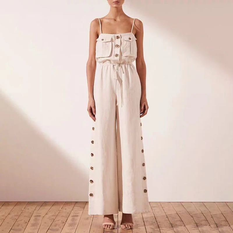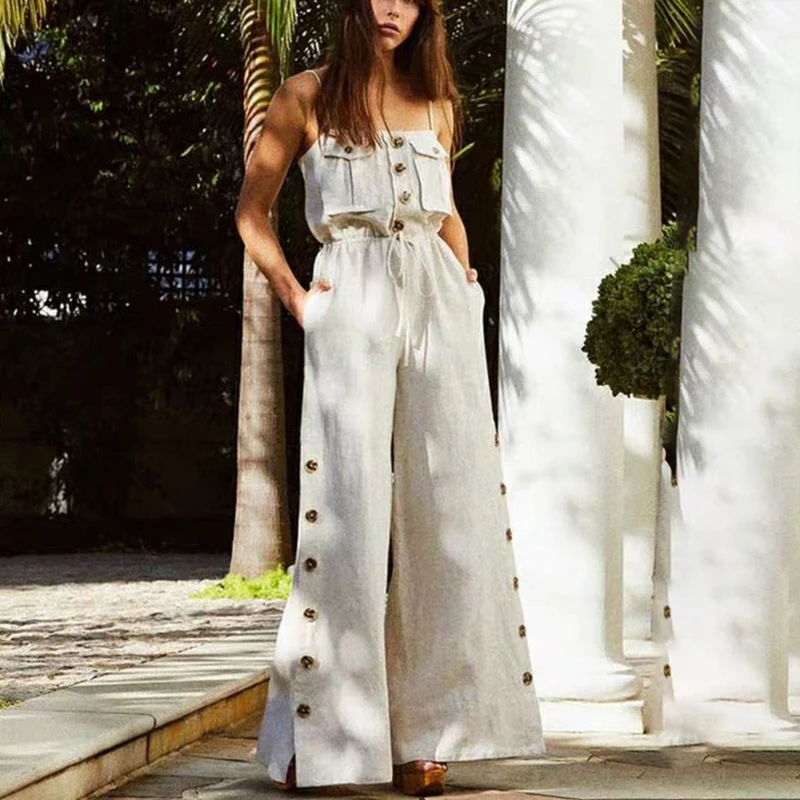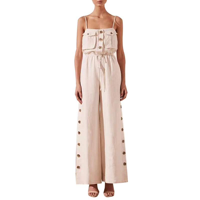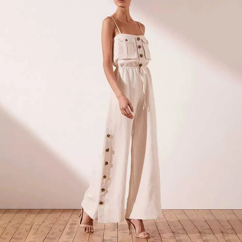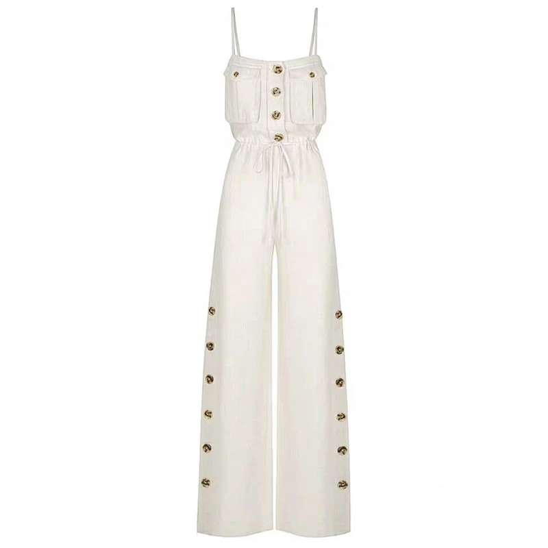 Shoulder Sexy Jumpsuit Women High Waist Button Big Size Wide Leg Pants Female Fashion New Tide