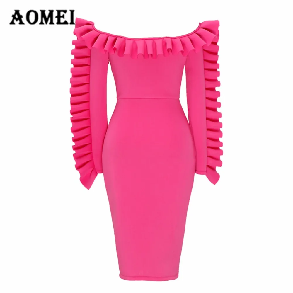 Slim Fashion Package Hip Strapless Tube Ruffles Dresses Body con Club Wear Tunic Clothes