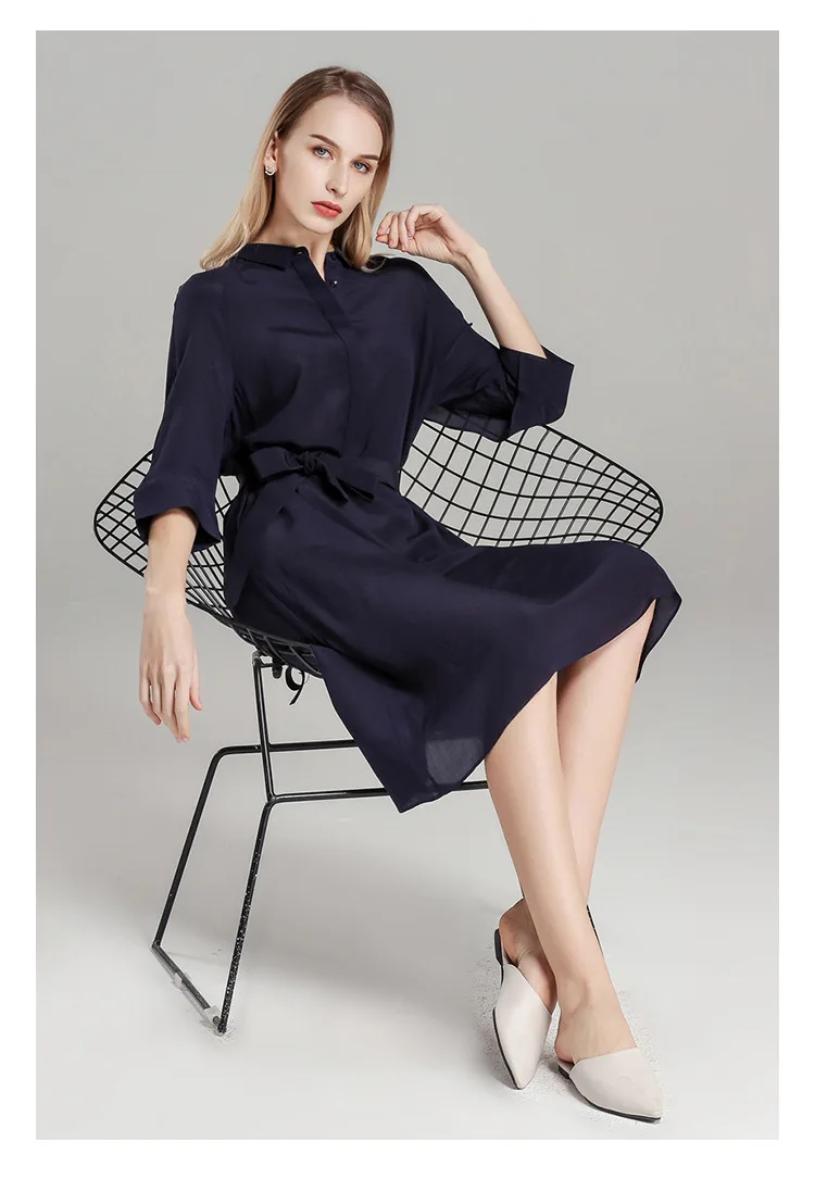 spring and summer new dress temperament square collar shirt casual fashion silk dress seaside travel