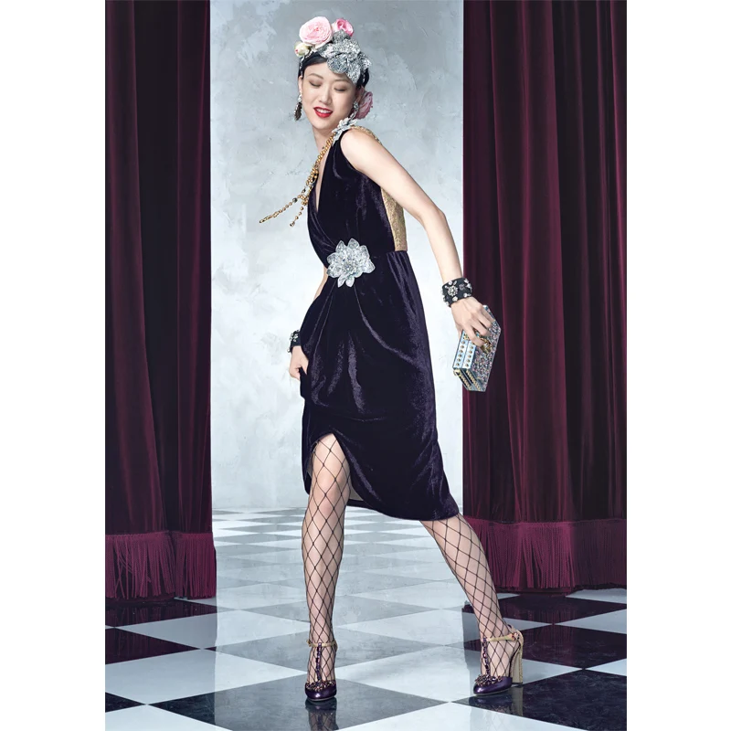 Woman Summer Dress Sexy V Neck Empire Diamonds Sleeveless Clothes Velvet Show Thin Dress